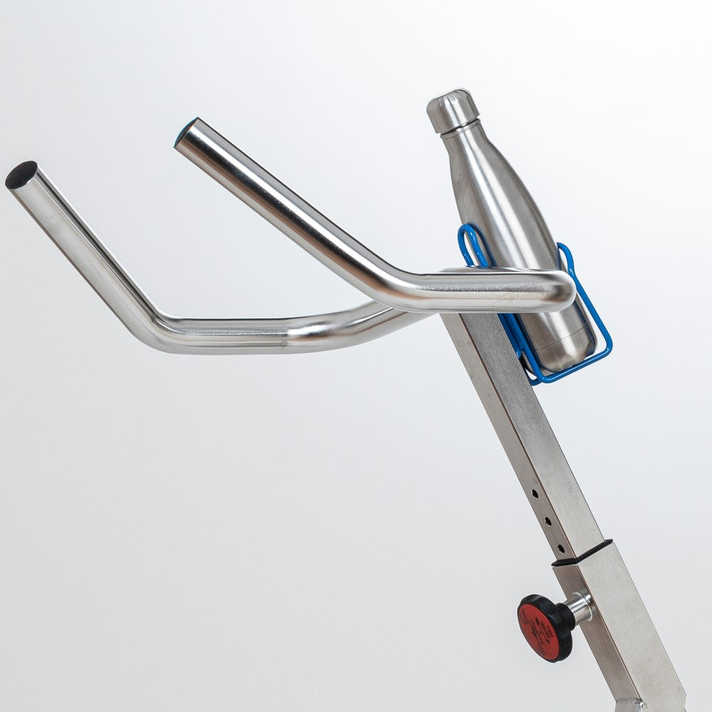The wide, ergonomic handlebars offer space to hold on. The optional drink holder with drinking bottle ensures fluid intake during training.
